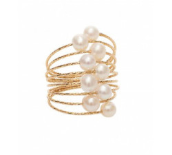 Anillo espiral de oro amarillo de la colección Galassie con diez perlas unidas por un mágico hilo de oro. Un anillo elegante y original elaborado...