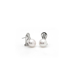 Pendientes tu y yo con perla y detalle de circonitas con cierre omega.Pendientes de perla ideales para lucir junto a otro tipo de pendientes....
