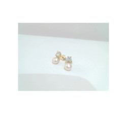 Pendientes perla y circonita plata chapada tu y yoCierre tuerca presion