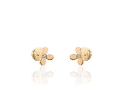 Pendientes de oro amarillo de 18 k, con forma de flor de 4 petalos y en el centro una circonita.Medidas: 4 x 4 mmCierre tuerca de rosca