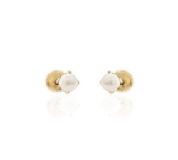 Pendientes de oro amarillo de 18 k, perla de 3 mm en 4 garras.Cierre tuerca de rosca