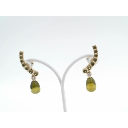 Pendientes largos con cristal y plata de ley bañada en Oro de 18kt. Tamaño del motivo de 4,5x1,8cm, forma de lágrima y color negro de la colección...