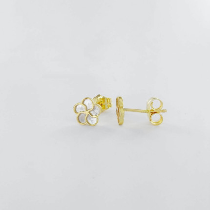 Pendientes oro mariposa nacar, cierre tuerca presión