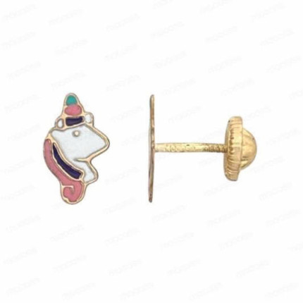 PENDIENTES ORO ESMALTE UNICORNIO ENTEROCIERRE TUERCA ROSCA