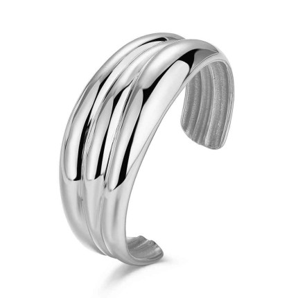 Anillo de acero 316 bañado en platino abierto en el centro en disminución 18 mm waterproofLas joyas ROCÍO MARTÍN están fabricadas en acero 316 y...