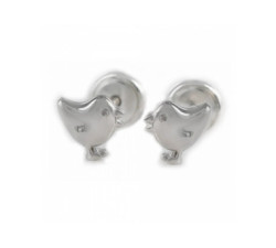 PENDIENTES BEBE PLATA RODIADA POLLITO 6 MMCIERRE TUERCA ROSCA