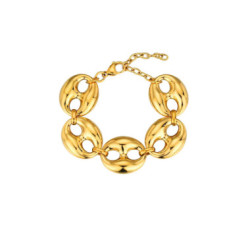 Pulsera acero chapado oro 18kt ovalos 17 cmWaterproof