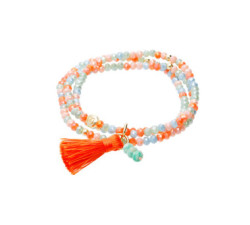 Pulsera ZEN PAPAYA con piedra naturalPulsera de plata de primera ley (925) chapada en oro amarillo de 18kt, con nucleo de silicona elástica y...