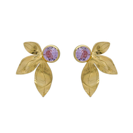 Pendientes botón 9mm de cristal y Plata de Ley bañada en Rodio con forma de círculo de la colección BasicCristal: Violet