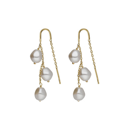 Pendientes gancho largos árbol Sera con perla en Plata baño oroPendientes gancho largos con perla de Plata de Ley. Tamaño del motivo de 4cm x 1,5cm...