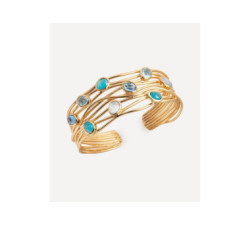 Pulsera Aqua con Piedras NaturalesPulsera brazalete Aqua de la colección Gemas, bañada en oro de 18kt, con piedras naturales de Iolita, jade y...